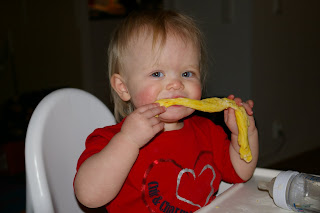 De brukar numera ligga på en stor gosehund från IKEA då de dricker sin morgonvälling, och då de tycker det tar för lång tid innan vi sätter igång och fixar välling åt dem, kommer de menande dragandes på hunden till oss. De älskar att borsta tänderna och kan rutinen att den ena får sina tänder borstade av mamma eller pappa först, och då står nästan alltid den väntande systern och tittar och pekar på sin tandborste, ungefär som "Är det inte min tur snart!?"